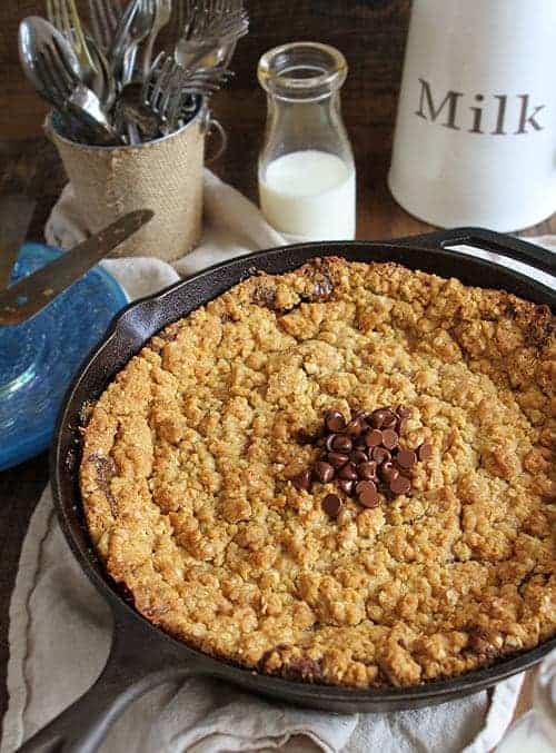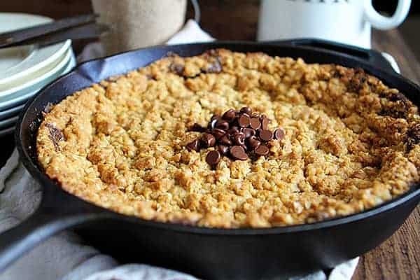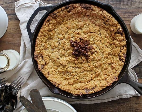 Most of the ingredients in this recipe are ingredients you probably have on hand, so get out a bowl and your 12-inch oven-safe skillet to get this dessert made.