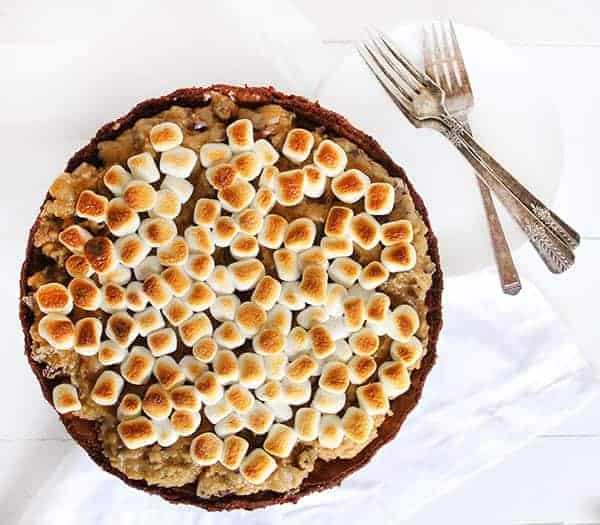 Everything about this pie is just calling my name.. brownies, cookie dough and marshmallows? Ugh how decadent.