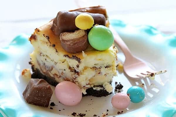 Can you believe I literally had one — ONE — Reese’s peanut butter egg for Easter candy this year? So sad. Must make up for it by devouring this cheesecake. ๐