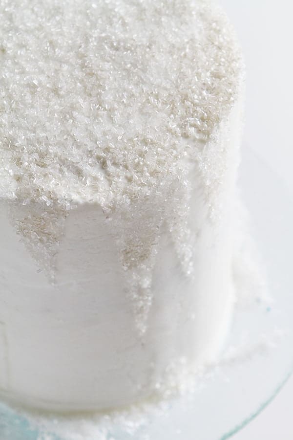 Remove all of parchment and discard. If you have any sparkles left over, they look great right around the base of the cake.