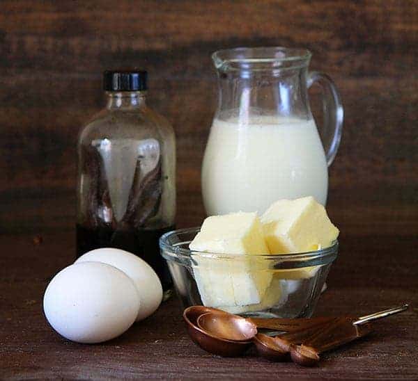 - In a medium bowl add in eggs, milk and vanilla and beat together with fork. Set aside.