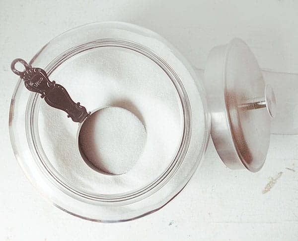 PRO TIP: Set the container in the sink and open the bag next to it. Any sugar that may spill out with be contained in the sink and you have one less thing to clean up!