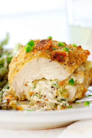 Jalapeno Popper Stuffed Chicken takes your favorite appetizer and turns it into a full-blown delicious meal. Fresh jalapenos, thick cut bacon, freshly grated parmesan, and cream cheese cooked to perfection inside of a seasoned and breaded chicken breast. If you like this, make sure to...