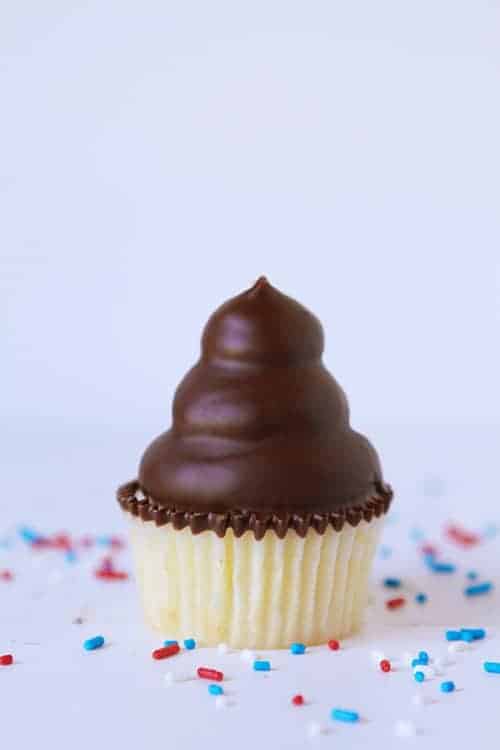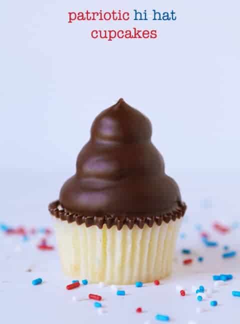 I think it’s safe to say that I love all things surprise-inside. These hi-hat cupcakes are a perfect way to celebrate with the classic red, white and blue theme, but to pleasantly surprise family and friends!