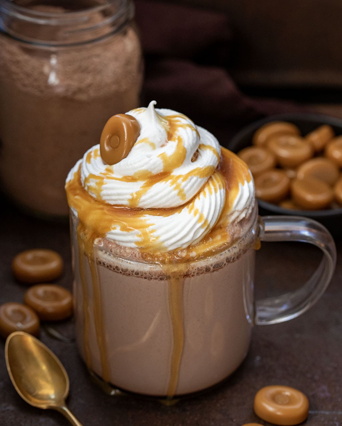 I love having a hot cocoa mix at home, ready to go, and this salted caramel hot cocoa mix is different and delicious!