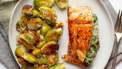 Perfectly seasoned and pan seared, this creamy spinach stuffed salmon will be a new family favorite!