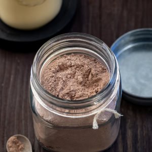 In a medium mixing bowl, whisk together cocoa powder, confectioners’ sugar, powdered milk, espresso powder, nutmeg, cinnamon, and salt until fully combined.
